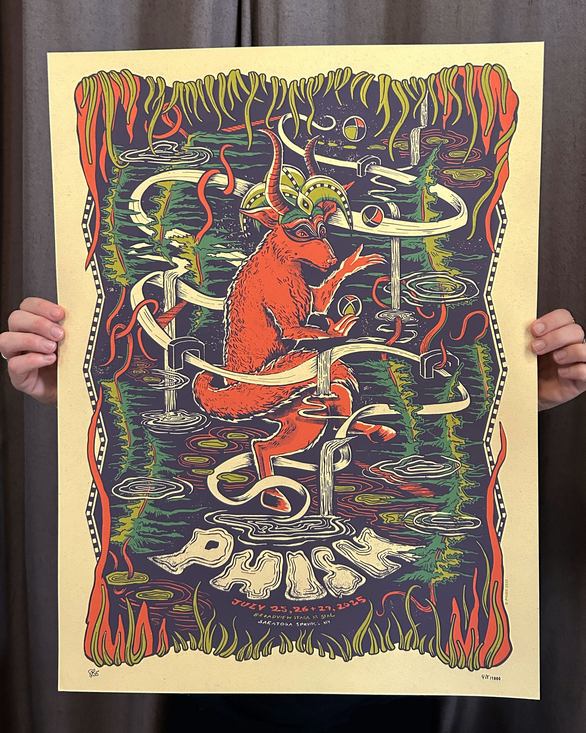 18x24" four color screen print on 100 lb. cover Manila Yellow French Paper, foil variant on rainbow holographic foil